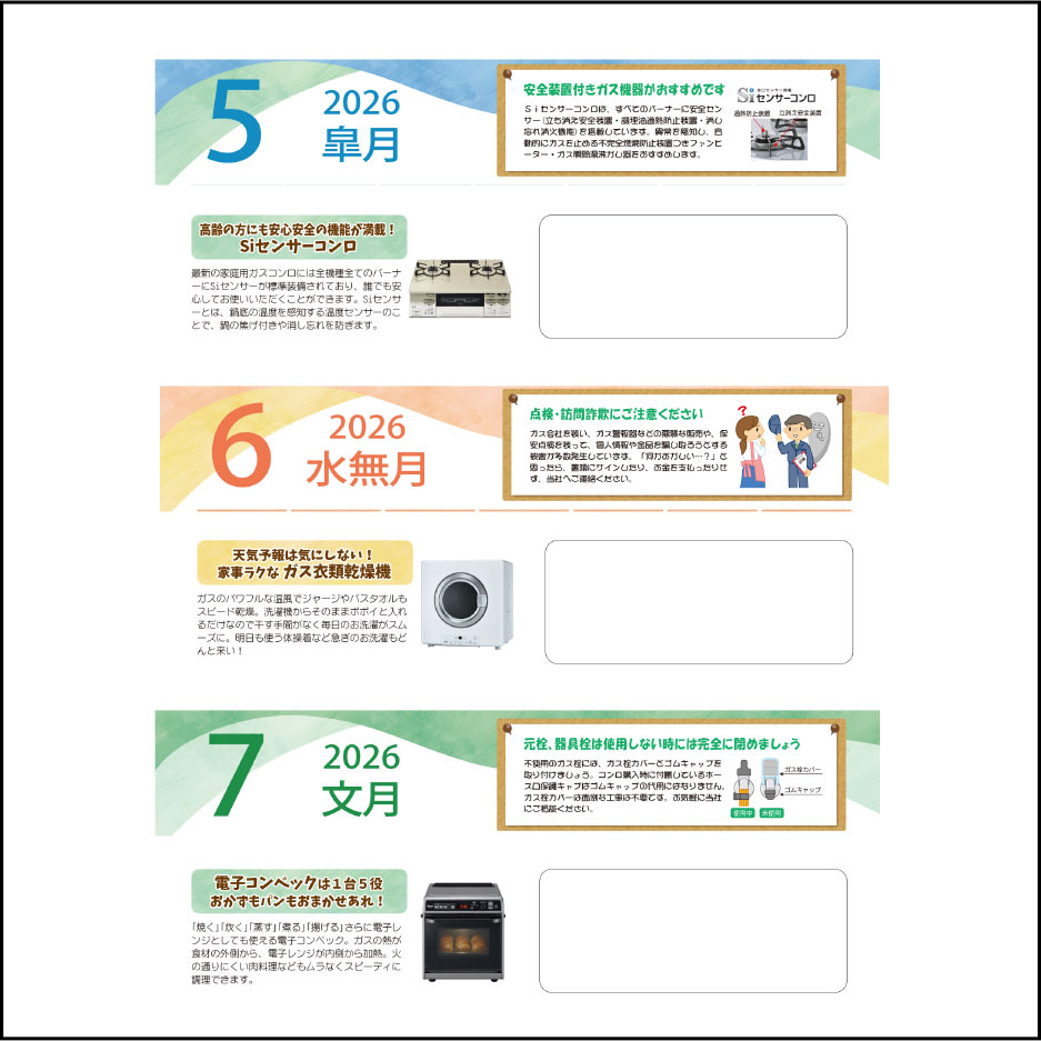 ガス保安周知カレンダー so-A3(保安周知文書つき)