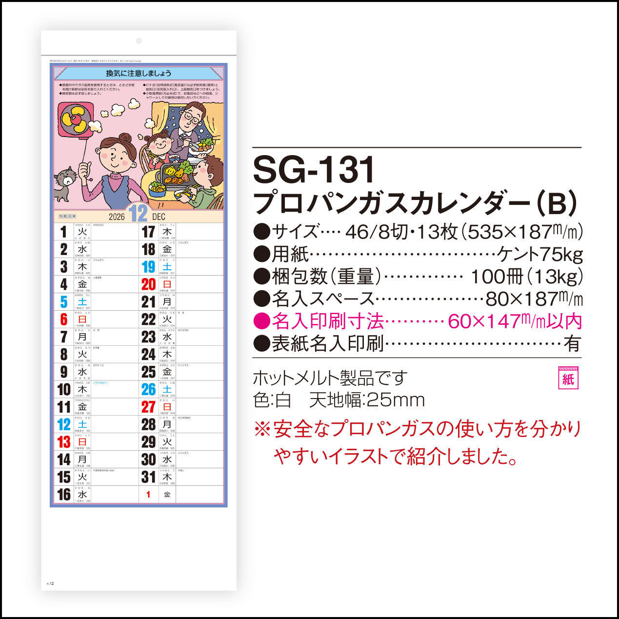 プロパンガスカレンダー(B) SG-131
